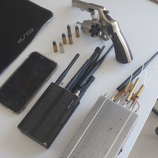 Um revólver calibre .38 e dois bloqueadores de sinal foram apreendidos